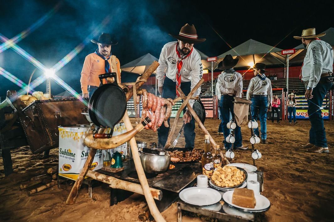 A noite de estreia também contou com manifestações culturais que reforçam a tradição do rodeio, como o desfile de mulas traiadas, a queima do alho e apresentações de berranteiros, resgatando a essência sertaneja.